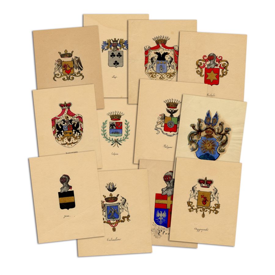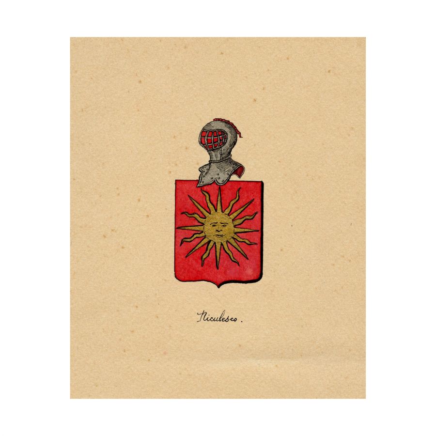 Colecție de 26 de blazoane realizate manual în tuș, acuarelă și foiță de aur, care înfățișează stemele unor vechi familii boierești și nobiliare, precum: Văcăresu, Vogoridy, Obedeanu, Perticari, Bogdan, Paleologu, Golescu, Niculescu, Scortesco, Schina, Crețianu, Lazo, Manu, Filichano, Balsche, Filipescu, Florescu, Kretzulescu, de Montigny, Barcanescu, Argyropoulo, Moruzi, Prejbeanu, Linche, Scortzesco, Jora.