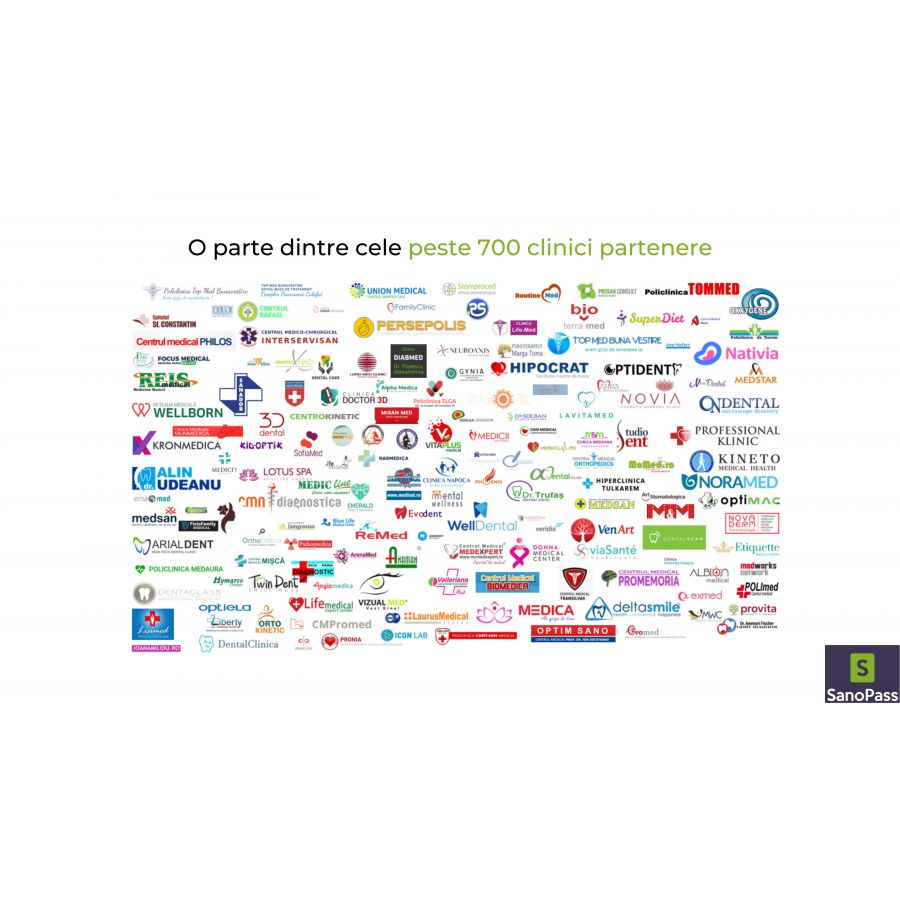 Clinici partenere: Sanador, Wellborn, Provita, Neuroaxis, Centrokinetic, Donna Medical Center, Ortokinetic, Emerald, Dental Care etc.