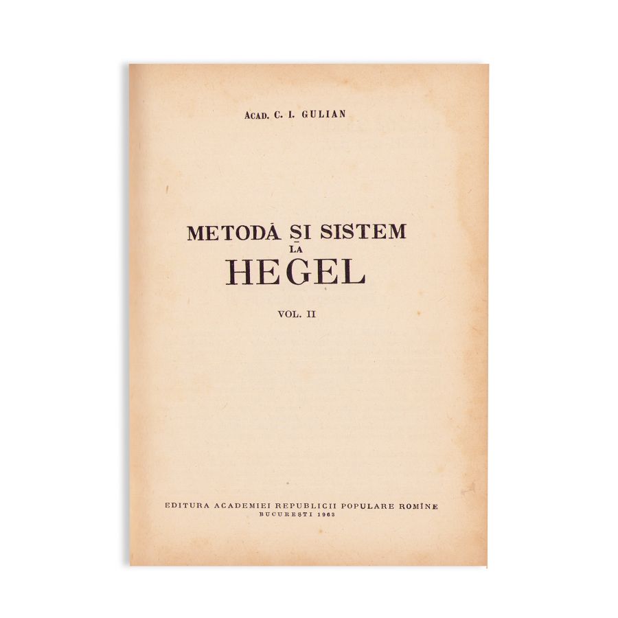 - Acad. C. I. Gulian, Metodă și sistem la Hegel, volumul II, București, Editura Academiei Republicii Populare Române, 1963, 548 p.