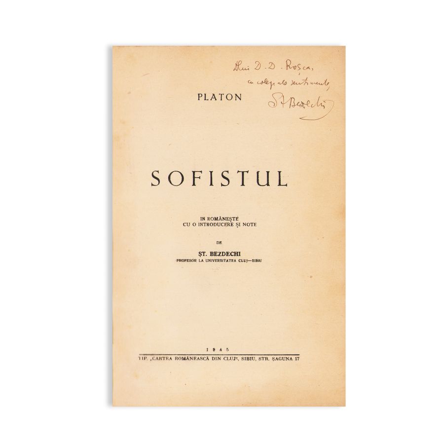 - Platon, Sofistul. În română cu o introducere și note de St. Bezdechi, Sibiu, Tipografia „Cartea Românească din Cluj”, 1945, 120 p.