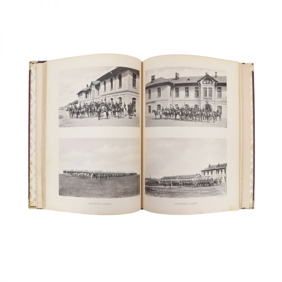 Albumul era realizat din inițiativa Marelui Stat Major al armatei române și oferit drept omagiu regelui Carol I, în amintirea campaniei militare din timpul Războiului de Independență. Volumul este format din două părți: prima parte cuprinde 245 de fotografii realizate de cunoscutul fotograf Al. Antoniu, ajutat de locotenentul Eliad, care înfățișează cazărmile, eșaloanele de comandă ale unităților și aspecte din viața cotidiană a acestor trupe care alcătuiau în epocă armata română; partea a doua cuprinde o istorie succintă a acestor unități, redactată în limbile română, franceză și germană. La începutul albumului, se află o dedicație către suveran, portretele regelui surprins în timpul campaniei din 1877, ale principilor moștenitori Ferdinand și Maria și al principelui Carol.