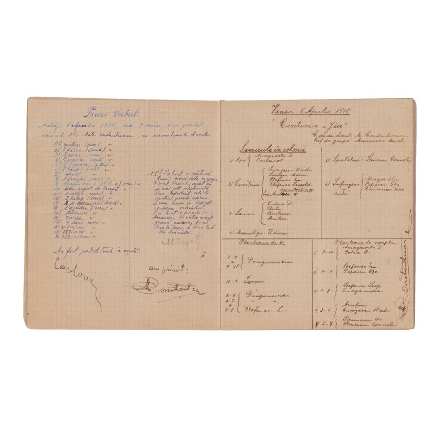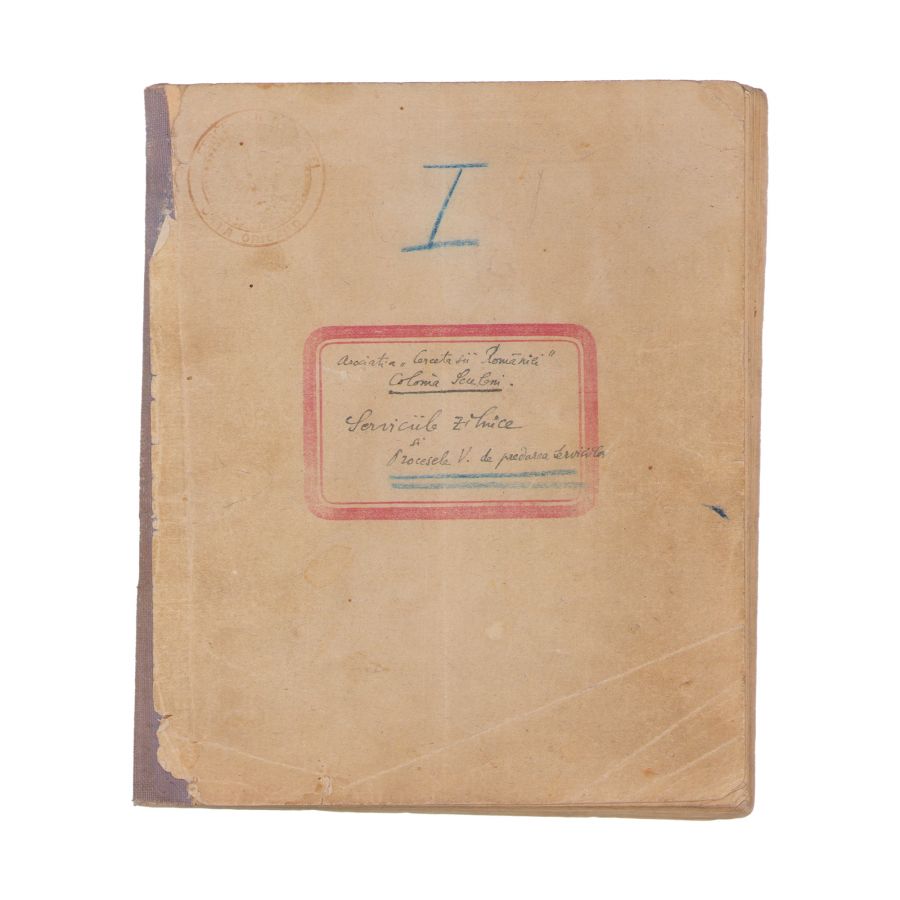 Caietul de procese verbale al predării serviciilor al Asociației „Cercetașii României” - Colonia Sculeni. Acesta a fost predat de Puiu Grigoresc în anul 1943 lui Constantin Dragomirescu.