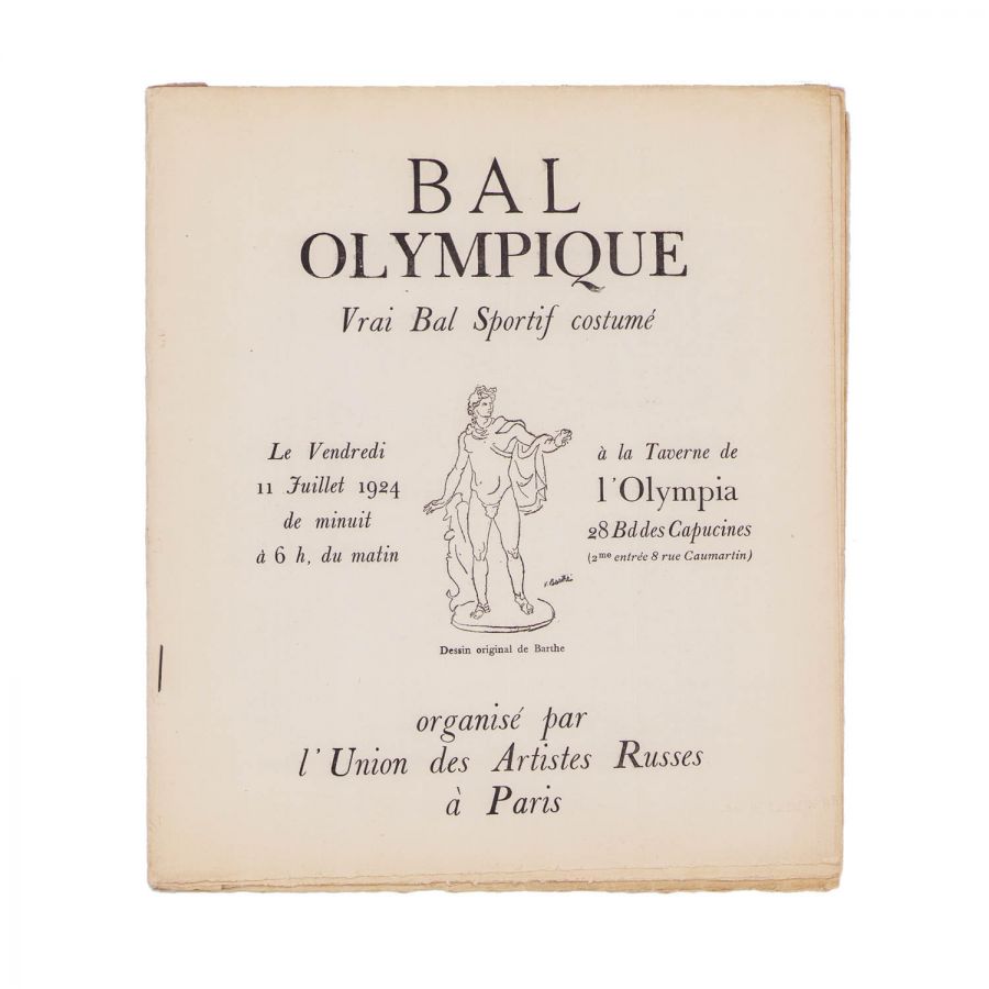 Programul balului mascat Bal olympique, organizat de Uniunea Artiștilor Ruși din Paris în 11 iulie 1924. Acesta conține pe prima pagină o ilustrație a lui Apollo Belvedere realizată de V. Barthe, iar în interiorul acestuia regăsim mai multe ilustrații de tip hors-texte realizate de: Chatzman, Manet, Picasso, Vassilieff, Fotinsky și Ganovsky.