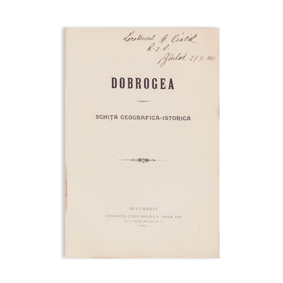 Dobrogea. Schiță geografică-istorică, București, Tipografia Curții Regale F. Gobl Fii, 1913, 54 p. Cu o hartă la finalul volumului.