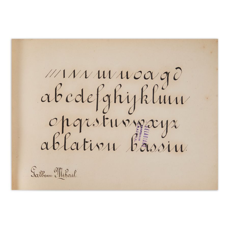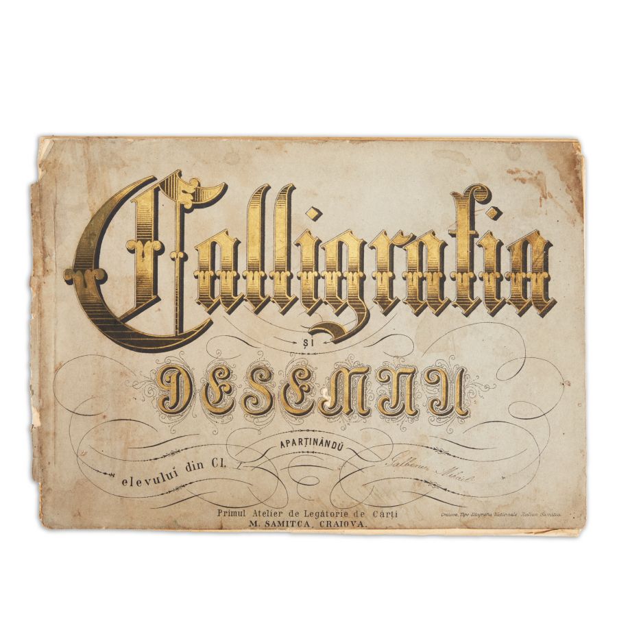 Caligrafia și desenul, manualul elevului Galben Mihail, realizată în atelierele M. Samitca din Craiova.