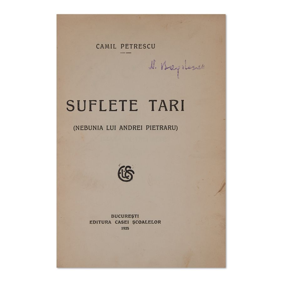 Camil Petrescu, Suflete tari, 1925, cu dedicație pentru N. Bagdasar