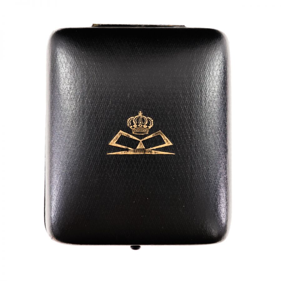 Ceasul păstrează cutia de epocă, îmbrăcată în piele neagră, al cărei capac a fost inscripționat cu monograma reginei Maria.