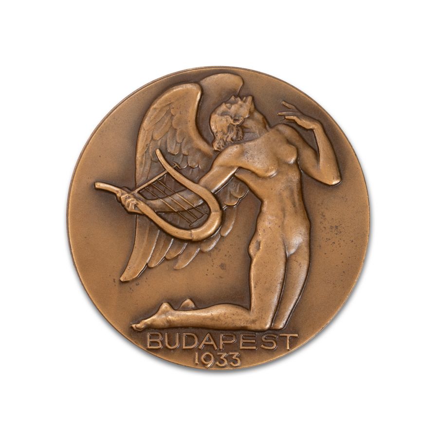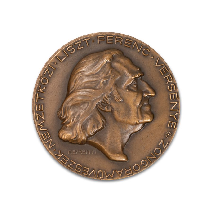 Medalie din bronz realizată de Reményi József pentru concursul de pian Franz Liszt din anul 1933.