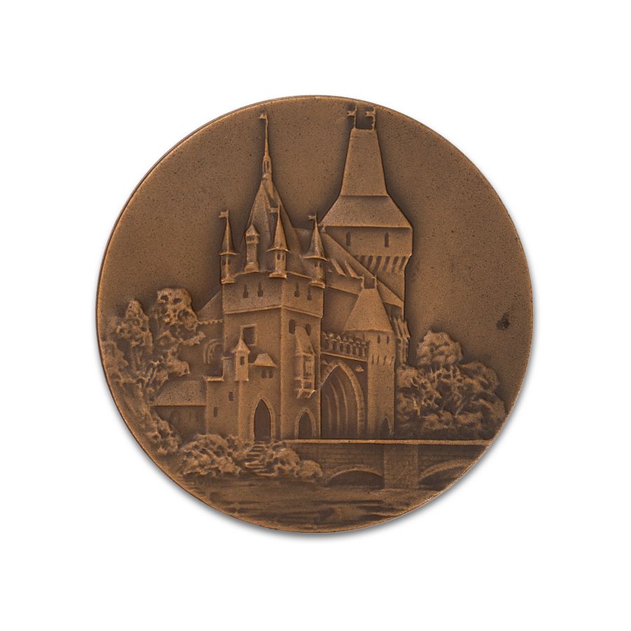 Medalie din bronz realizată de István Iván cu reprezentarea unui castel.
