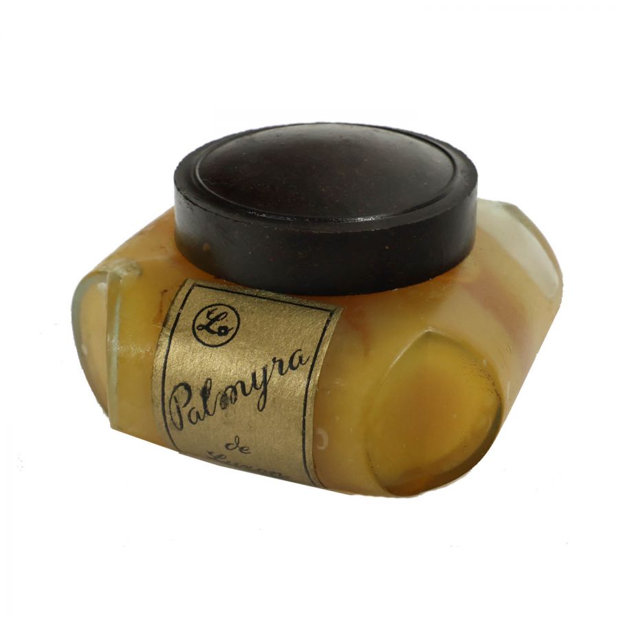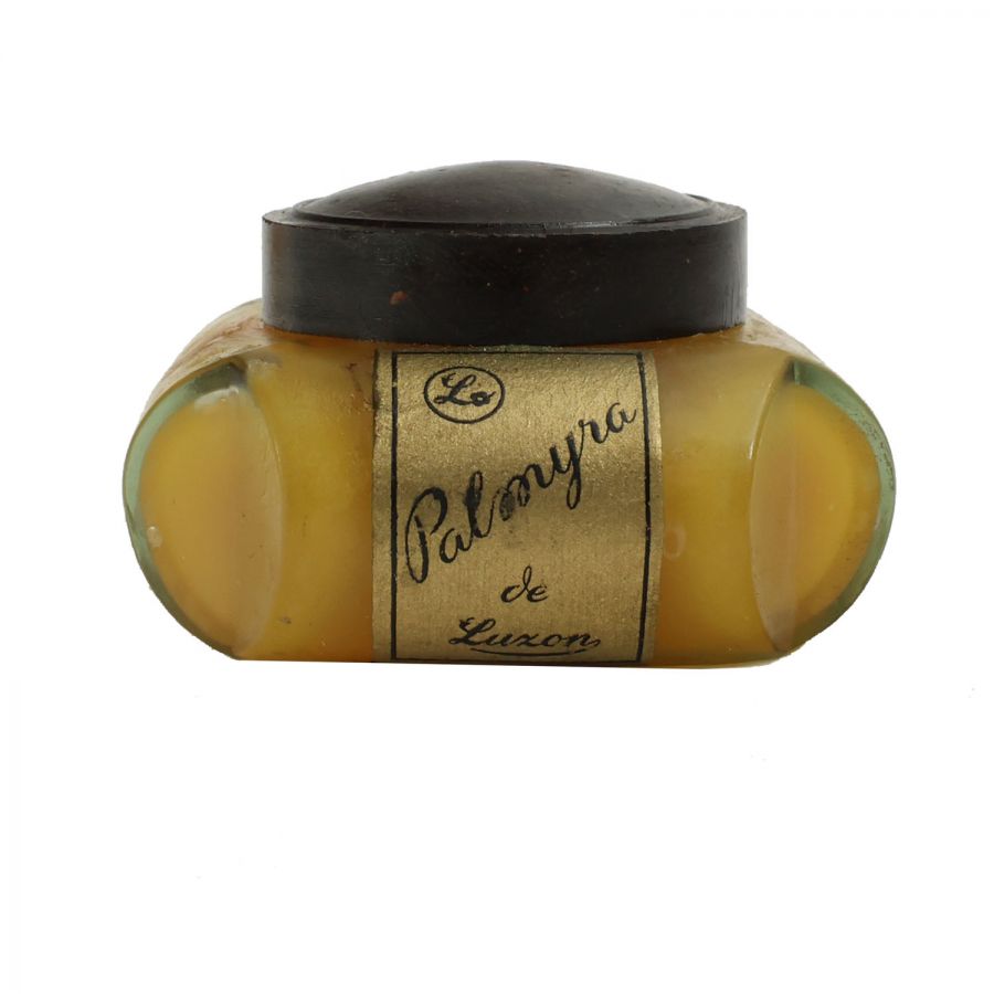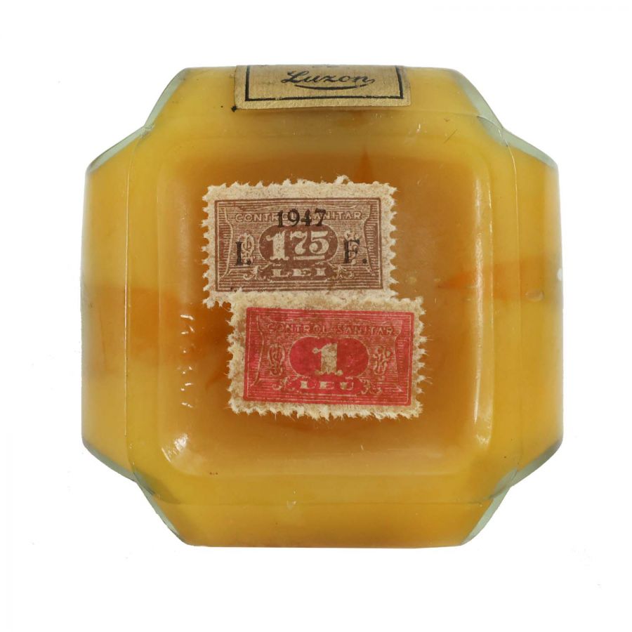 Cremă de față sigilată marca Palmyra de Luzon. Acesta poartă două timbre de control sanitar românești ce poartă datarea 1947.