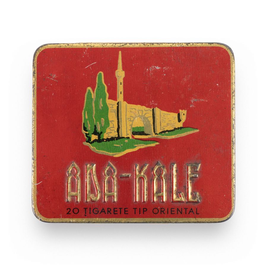 Cutie metalică pentru 20 de țigarete tip oriental produse în Fabrica de Țigarete Ada Kale.