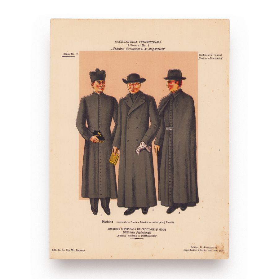 Enciclopedia Profesională. Albumul Nr. 1, mapă cu 8 planșe conținând modele de veșminte ecleziastice și de magistratură, produse de Academia Superioară de Croitorie și Mode, Biblioteca Profesională „Tehnica modernă a îmbrăcămintei”. Planșele color sunt editate de D. Theodorescu.