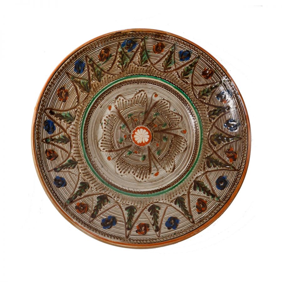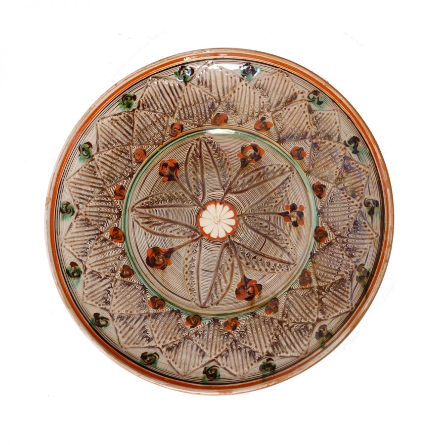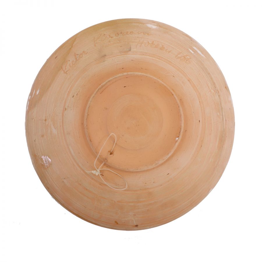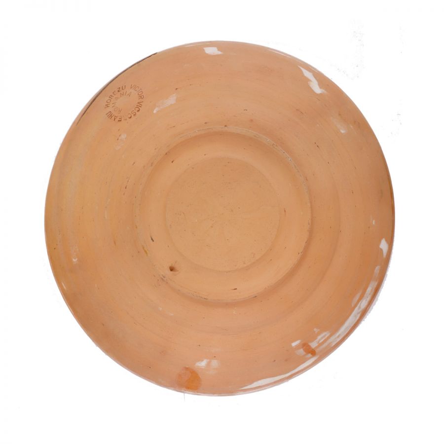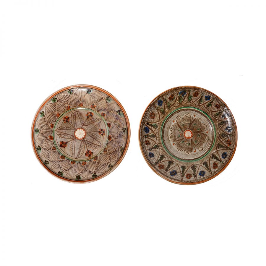 Două farfurii din ceramică de Horezu, semnate Victor Vicșoreanu, 1986