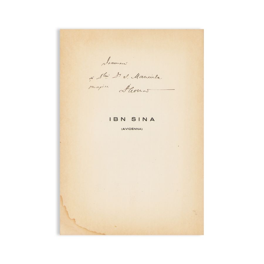Dr. V. Gomoiu, Ibn Sina (Avicenna), 1937, cu dedicație pentru doamna și domnul dr. Simion Manuila