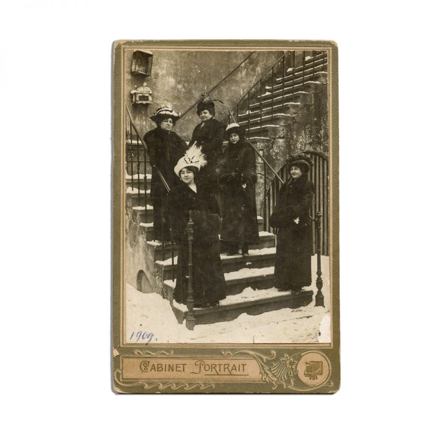 Fotografie de cabinet ce o surprinde pe Elena Văcărescu într-un grup de mai multe doamne.