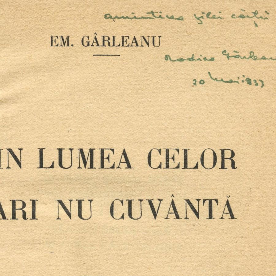 Volumul păstrează pe pagina de titlu însemnarea olografă a fiicei autorului, Rodica Gârleanu, datată 20 mai 1933.