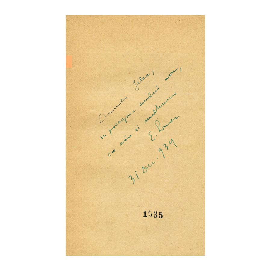 Volumul poartă dedicația olografă a autorului oferită sculptorului Ion Jalea, datată 31 Decembrie 1934.