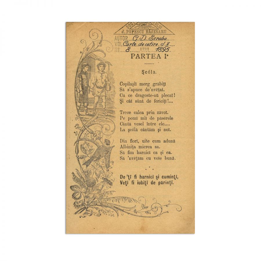 G. D. Scraba, Carte de citire pentru clasa II primară urbană și rurală, 1895, cu ex-librisul lui I. Popescu Băjenaru
