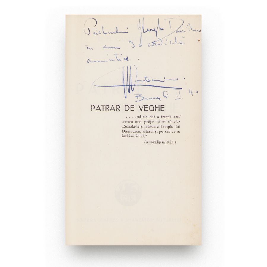 G. M. Cantacuzino, Pătrar de veghe, 1938, cu dedicație olografă