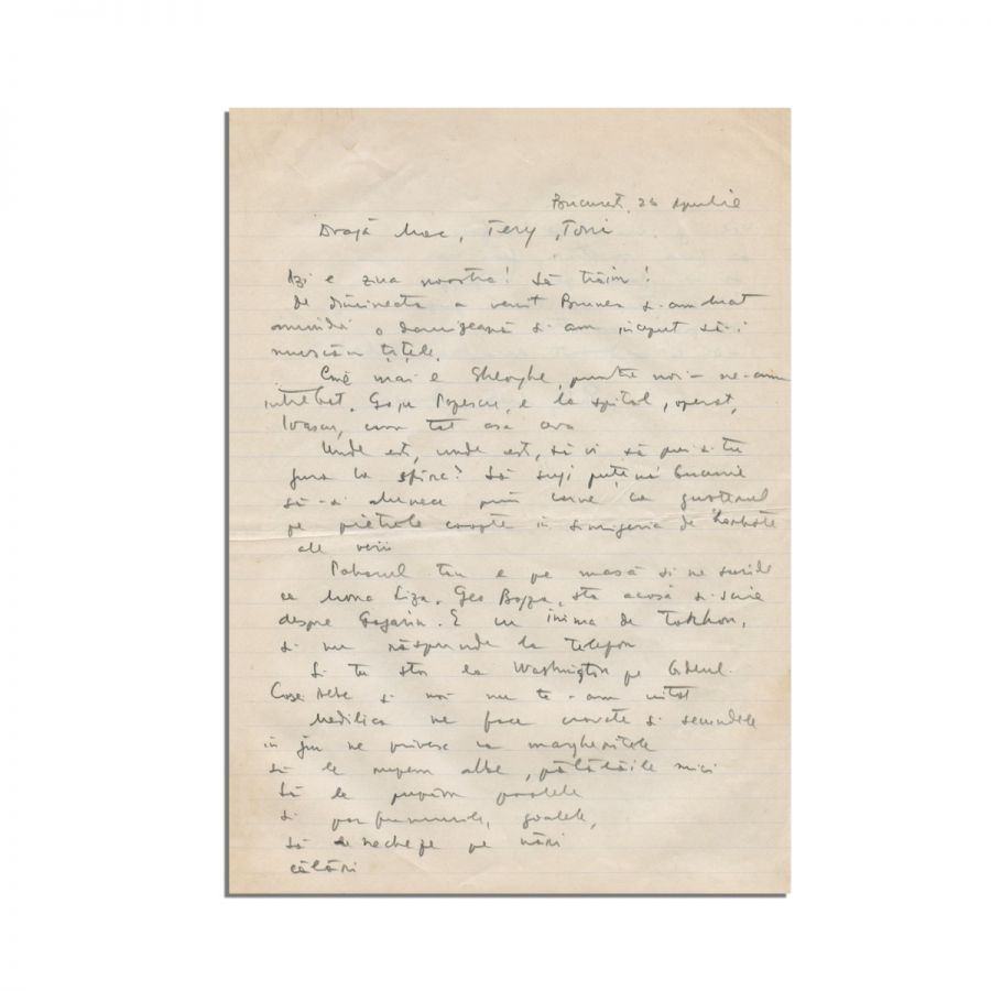 Trei scrisori redactate de Gheorghe Dinu (Stephan Roll) pentru Mac Constantinescu, Tery și Toni. Acesta le povestește de petrecerea pe care a dat-o alături de Medi și Filip Brunea-Fox cu ocazia zilei sale de naștere. Scrisoarea conține câte o poezie intitulată „Ție și mie”. Cele 3 scrisori au fost redactate cu creionul recto-verso pe 9 pagini. Piesele de corespondență sunt datate 23 Aprilie 1961.