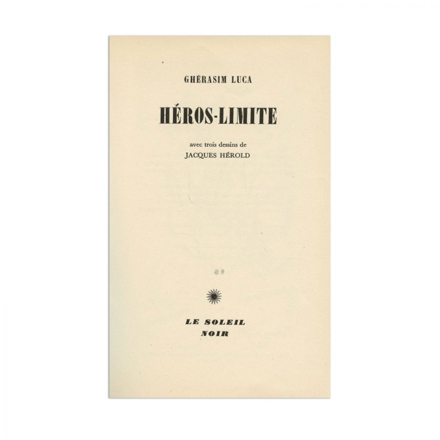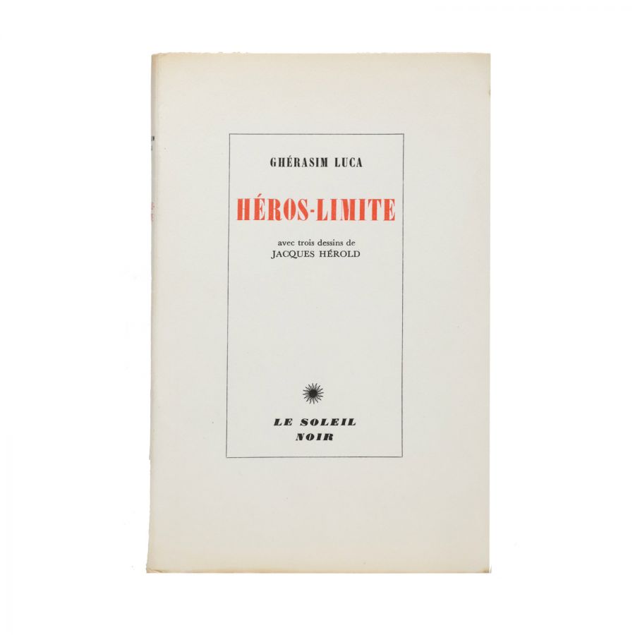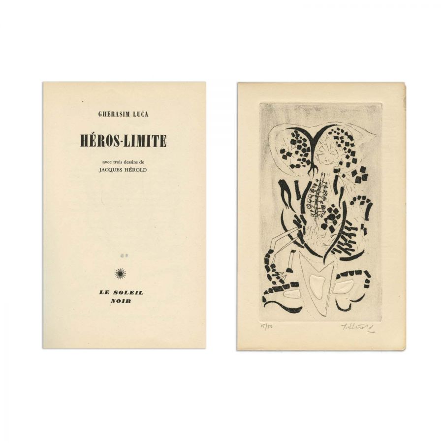 Gherasim Luca, Héros-Limite, cu trei desene de Jacques Hérold, Paris, Le Soleil Noir, l’Imprimerie Union, 1953, 89 p.