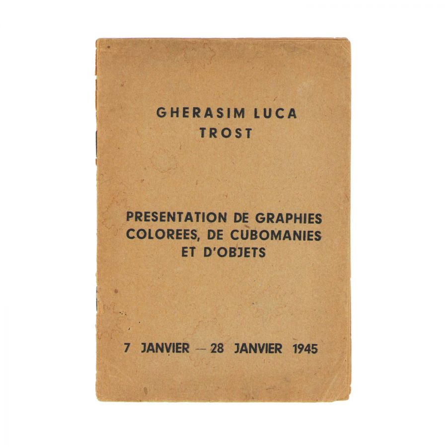Gherasim Luca și Dolfi Trost, Presentation de graphies colorées, de cubomanies et d'objets, București, Imprimeriile „Independența”, f.n., 1945.