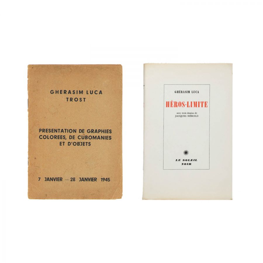Gherasim Luca, Héros-Limite, 1953, exemplar bibliofil cu semnături olografe + Gherasim Luca și Dolfi Trost, Presentation de graphies colorées, 1945