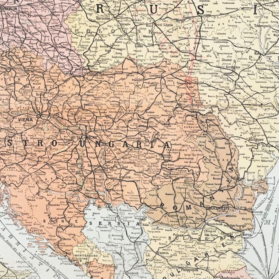 Harta Războiului European, realizată la o scară de 1:4.000.000 în litografia Frații Moravek București.