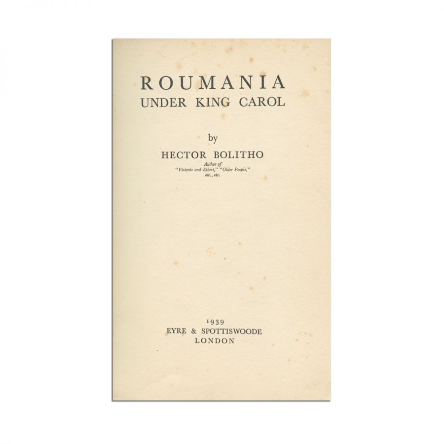 Hector Bolitho, Roumania under king Carol, London, Eyre & Spottiswoode, 1939, 175 p., cu numeroase reproduceri fotografice în afara textului.