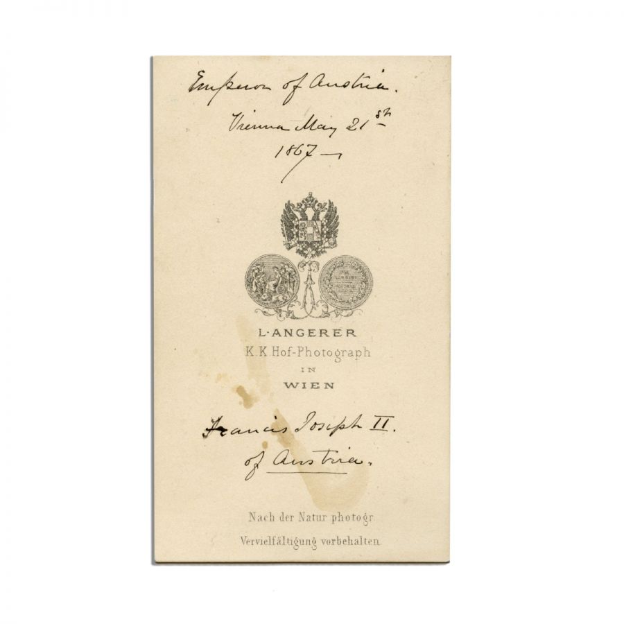 Fotografie format carte-de-visite ce-l înfățișează pe Franz Joseph I, împăratul Austro-Ungariei.
