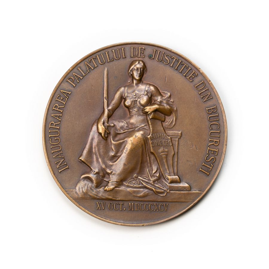 Inaugurarea Palatului de Justiție din București, medalie din bronz, 1895, gravor C. Stelmans