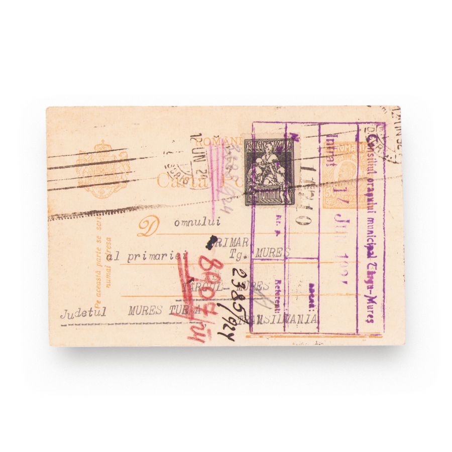 Ioan Focșăneanu și Ion Bulandra, carte poștală expediată primarului orașului Târgu Mureș, 11 iunie 1924