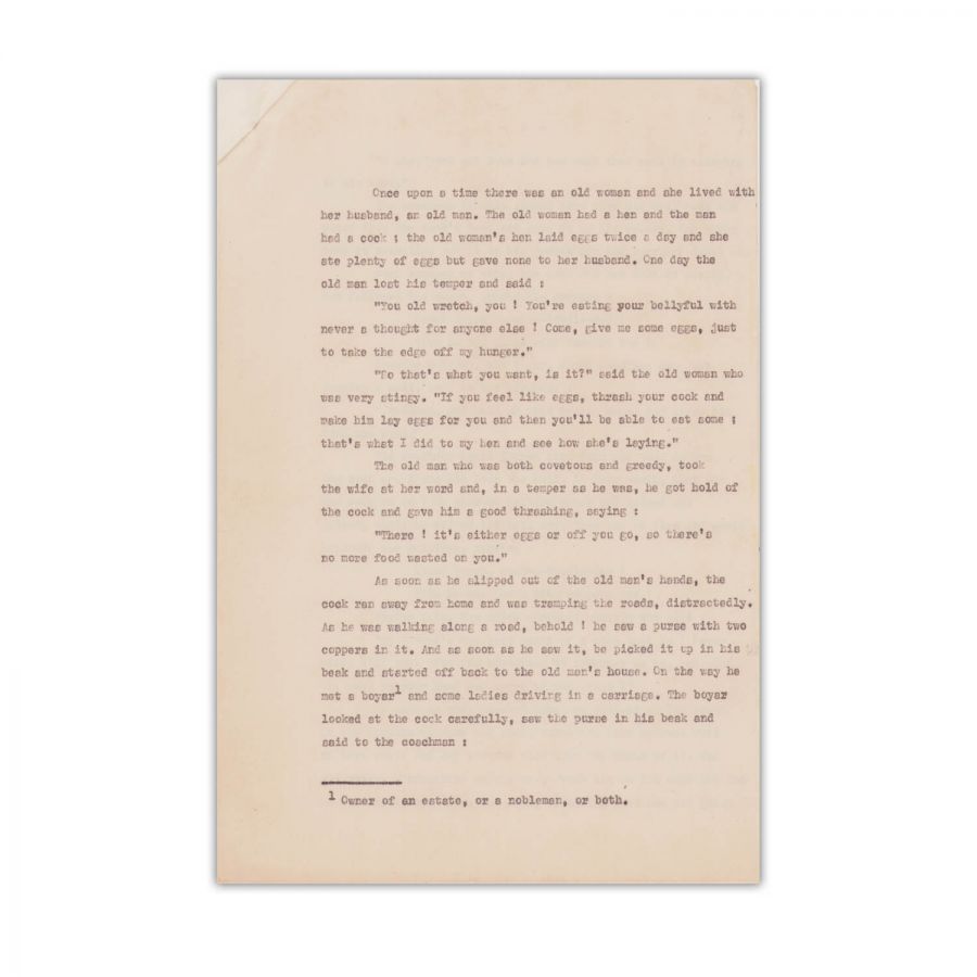 Dactilograma în limba engleză a povestirii Punguța cu doi bani, scrisă de Ion Creangă.