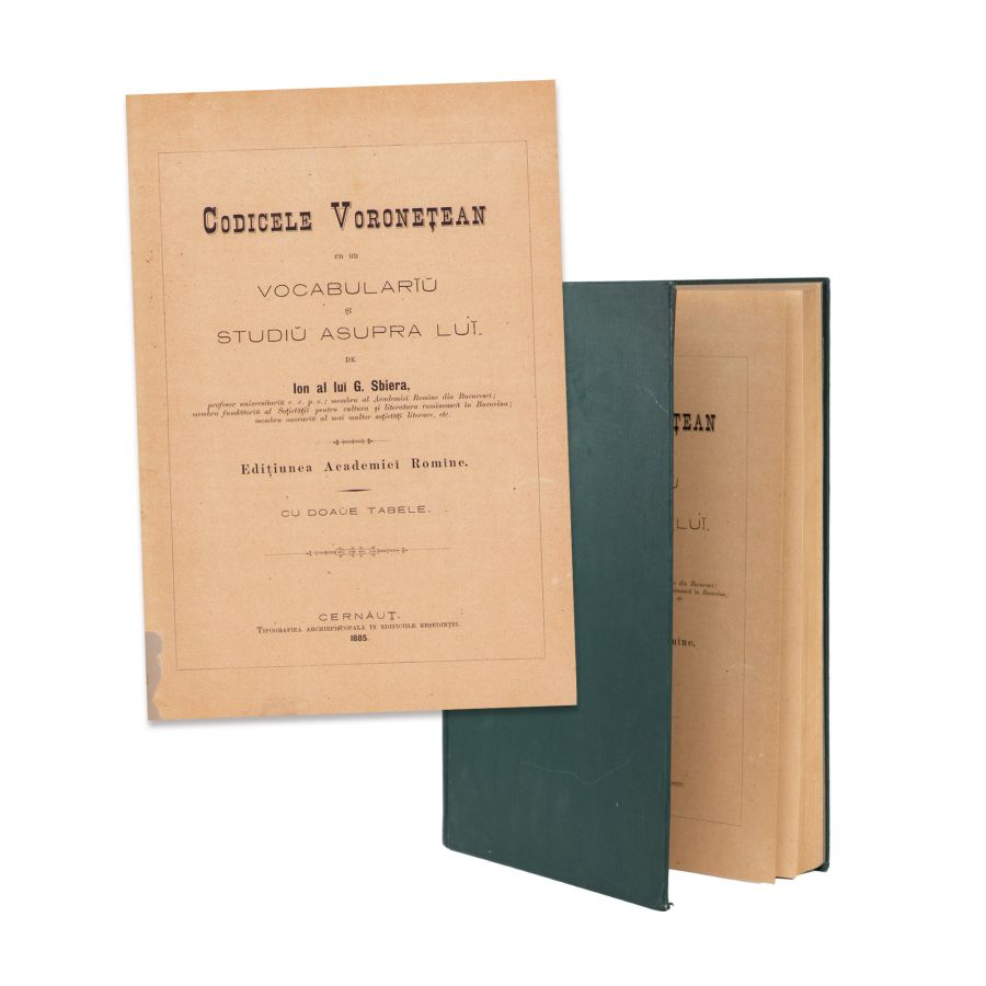 Ion G. Sbiera, Codicele Voronețean. Cu un vocabular și studiu asupra lui, Cernăuți, Tipografia Arhiepiscopală în Edificiile Reședinței, 1885. VI, 354 p.