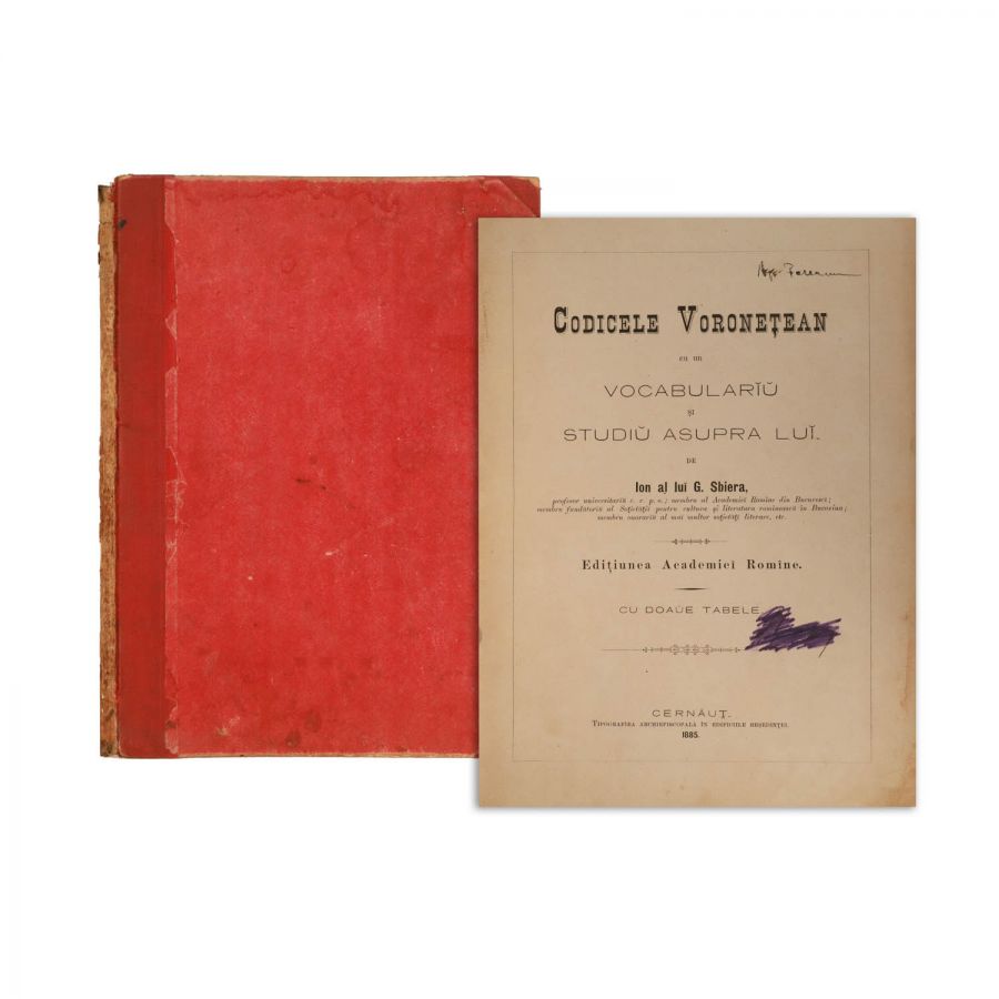 Ion G. Sbiera, Codicele Voronețean. Cu un vocabular și studiu asupra lui, Cernăuți, Tipografia Arhiepiscopală în Edificiile Reședinței, 1885. VI, 354 p.