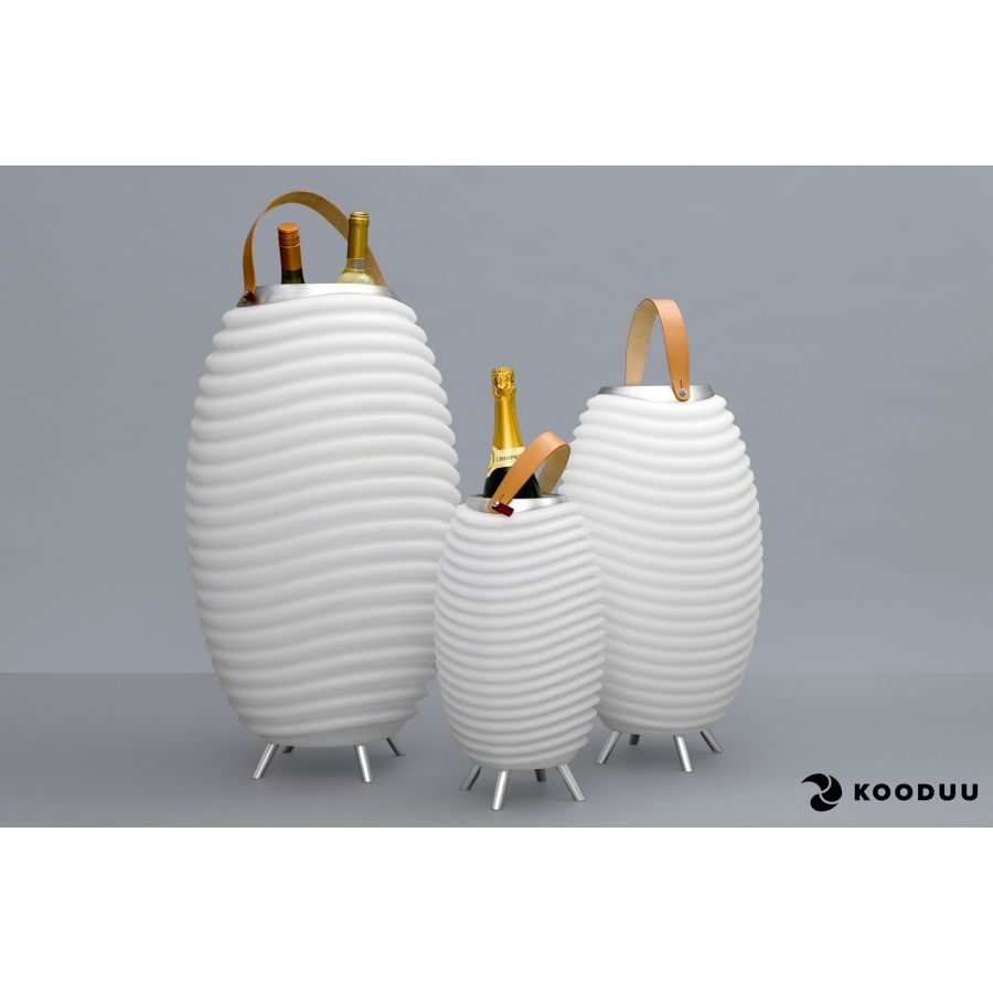 KODUU Synergy 65PRO este frapieră, lampă LED și boxă portabilă,toate într-un singur produs și poate fi conectată cu până la 100 alte piese asemenea ei, formând astfel un sistem de difuzoare.