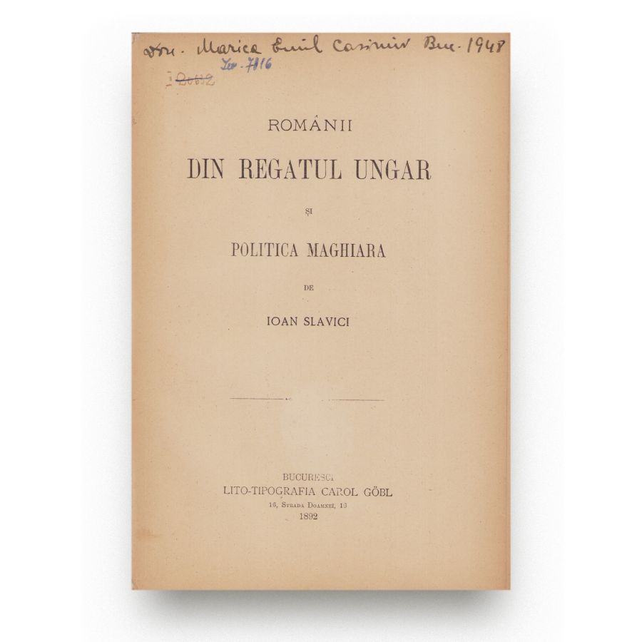 Ioan Slavici, Românii din Regatul Ungar și politica maghiară, București, Lito-Tipografia Carol Gobl, 1892, 46 p.