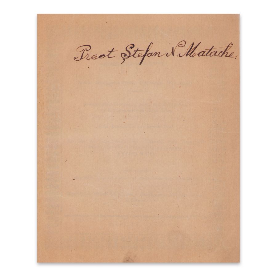 O altă însemnare (de posesor), pe forzațul mobil anterior: Preot Ștefan N. Matache (cu cerneală neagră).