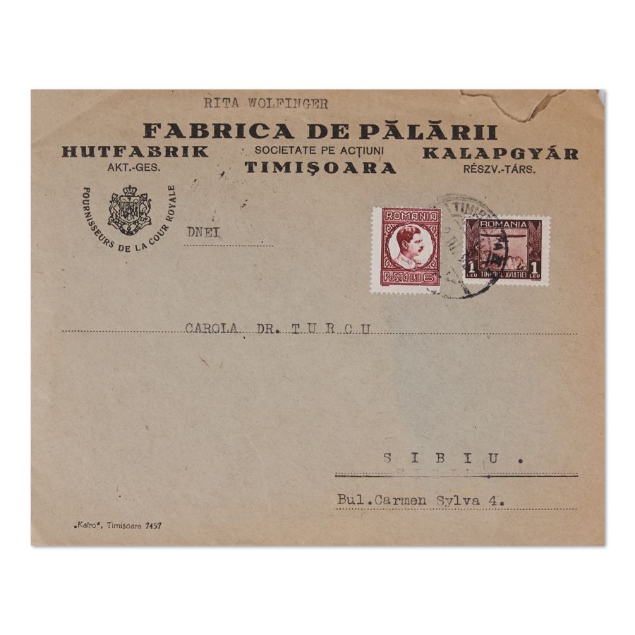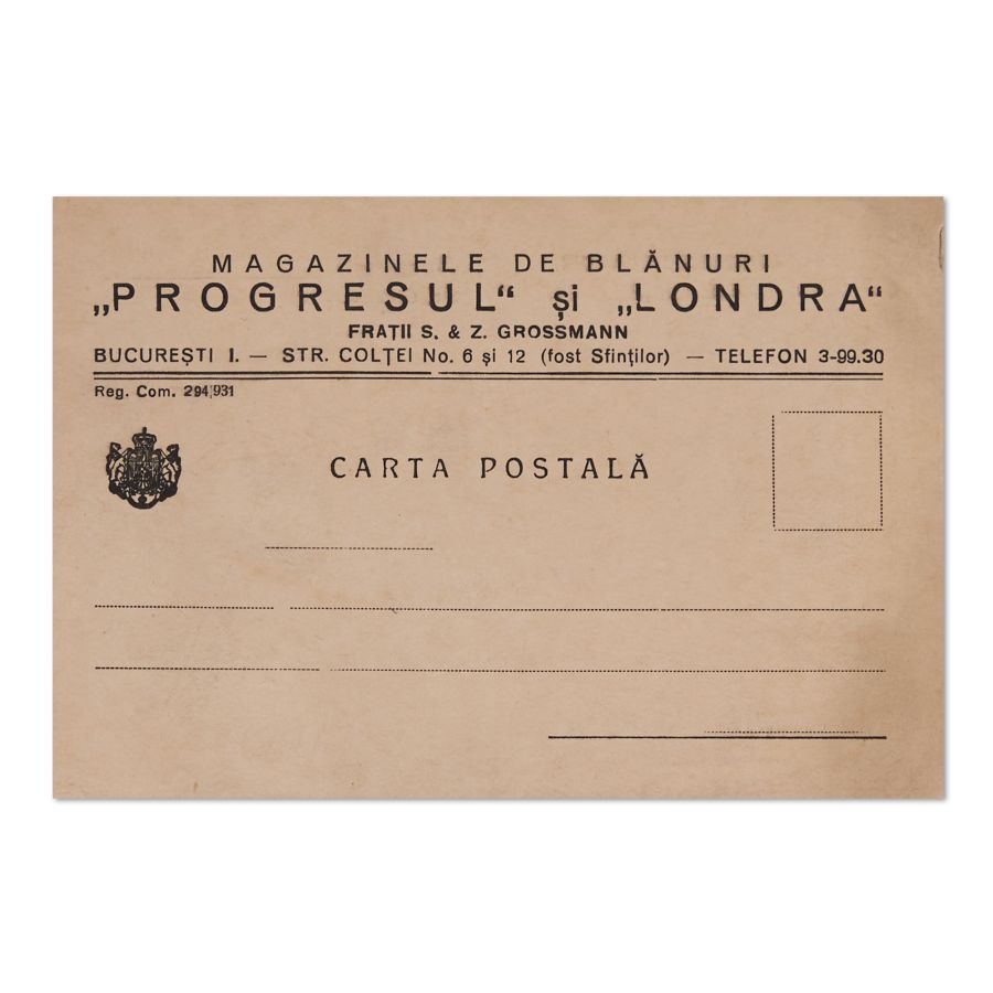 Magazinul de blănuri „Progresul” și „Londra”, turnătoria Fritz Kauntz și Fabrica de pălării, două plicuri și o carte poștală