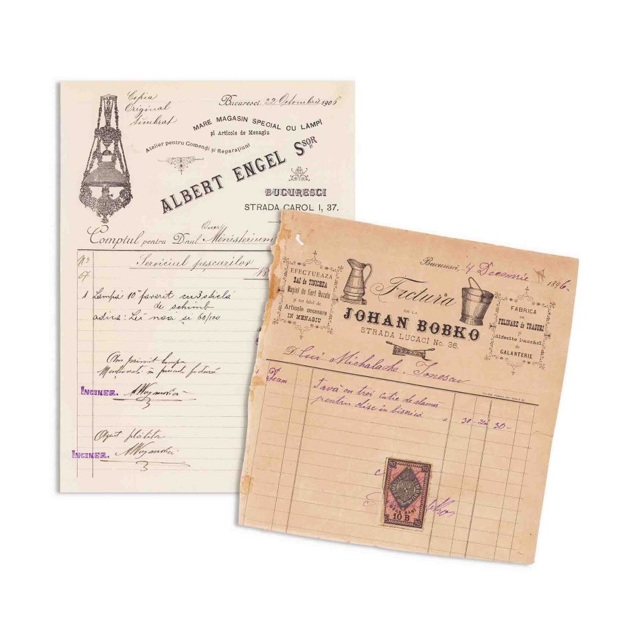 Magazinul de lămpi „Albert Engel” + Societatea Johan Bobko, două facturi, 1896-1906