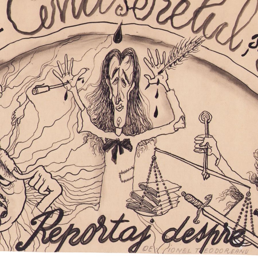 Mihail D. Gion, Maestrul-Cenușerelul și Ioana D’acra, 1940, peniță și acuarelă pe carton