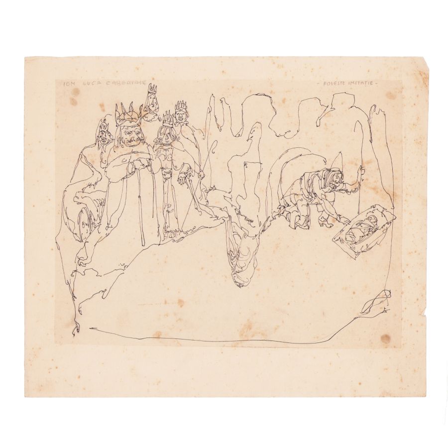 Mihail D. Gion, scenă din I. L. Caragiale + B. P. Hasdeu, două lucrări de grafică