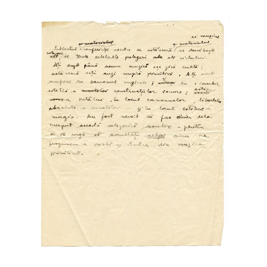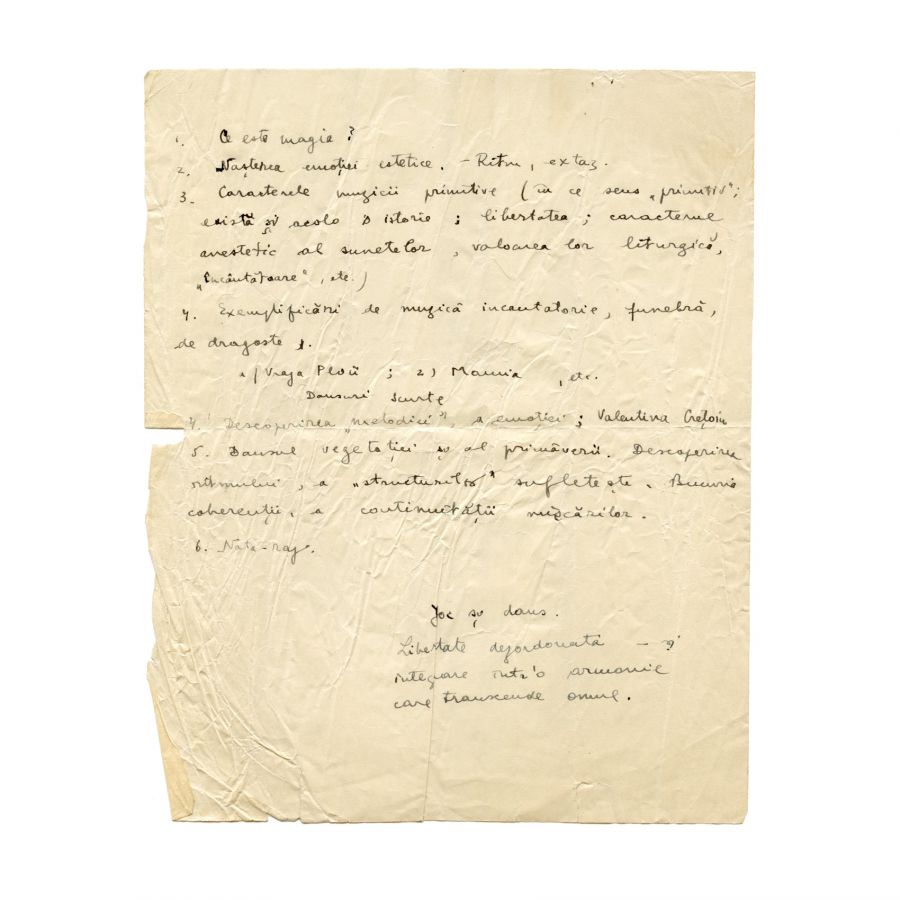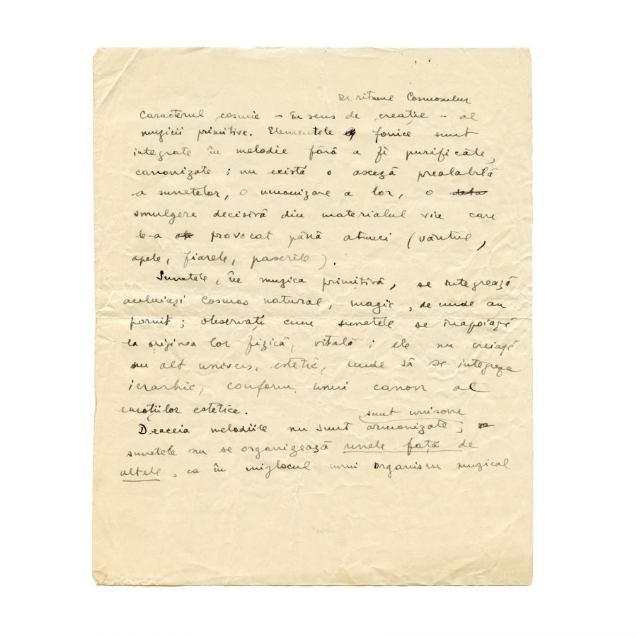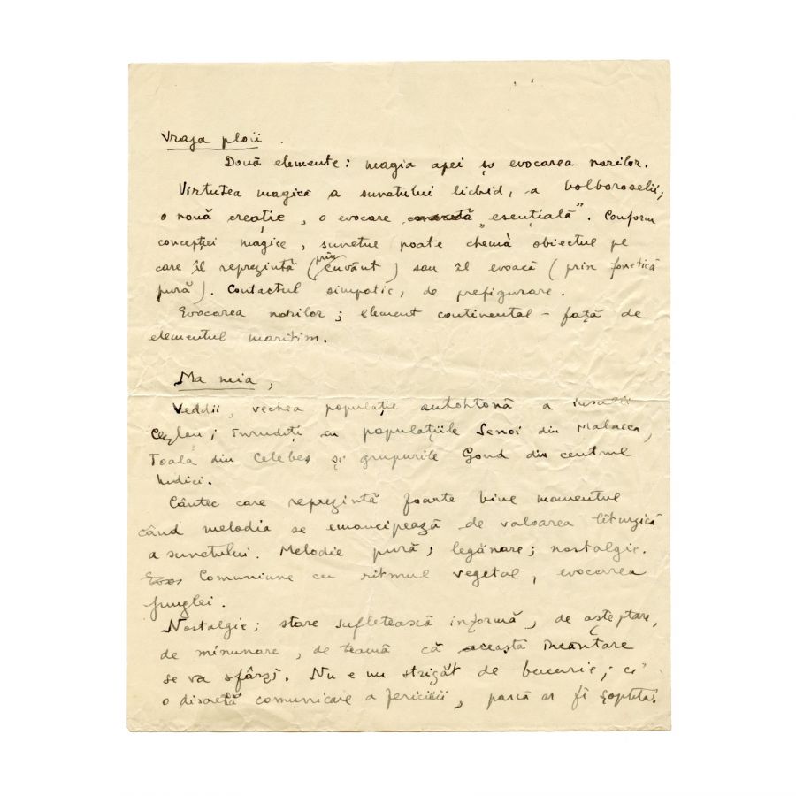 Mircea Eliade, manuscrisul unei conferințe pe tema muzicii primitive