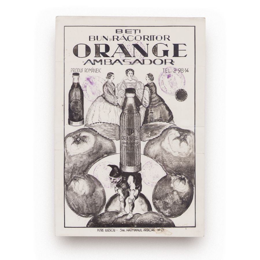 Reclamă de epocă pentru băutura Orange „Ambasador”, produs românesc.