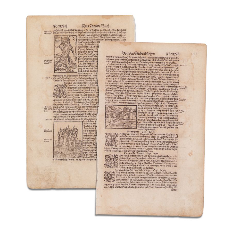 Pagina 1361/1362 din volumul lui Sebastian Münster, Cosmographia [Cosmographey Oder beschreibung Alle..], publicată la Basel în anul 1588, care face referire la principatul Transilvaniei precum și la cel al Valahiei. În cadrul textului au fost tipărite trei miniaturi, una dintre ele înfățișând un miner din Transilvania, cea de-a doua îi înfățișează pe cei trași în țeapă de Vlad Țepeș, iar cea de-a treia reprezintă o vedere a cetății Sibiu.
