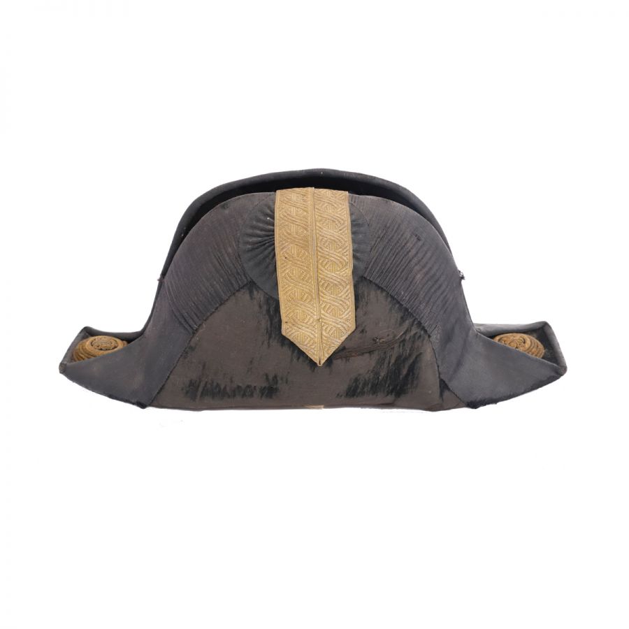 Pălărie bicorn din serviciul public Austro-Ungar, realizată din pâslă neagră. De-a lungul marginilor superioare ale borurilor răsucite, pălăria este decorată cu o panglică neagră cusută, având dimensiunea de 6,5 cm. În partea dreaptă a fost aplicată o panglică aurie brodată cu multe detalii. În fiecare vârf al bicornului a fost amplasat un însemn brodat cu auriu sub forma unor butoni cu reprezentarea vulturului național Austro-Ungar. Interiorul pălăriei este căptușit cu un material auriu de tip satin și cu o bandă din piele cafenie.