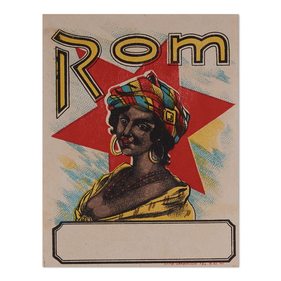 Patru etichete pentru rom ilustrate cu figuri feminine.