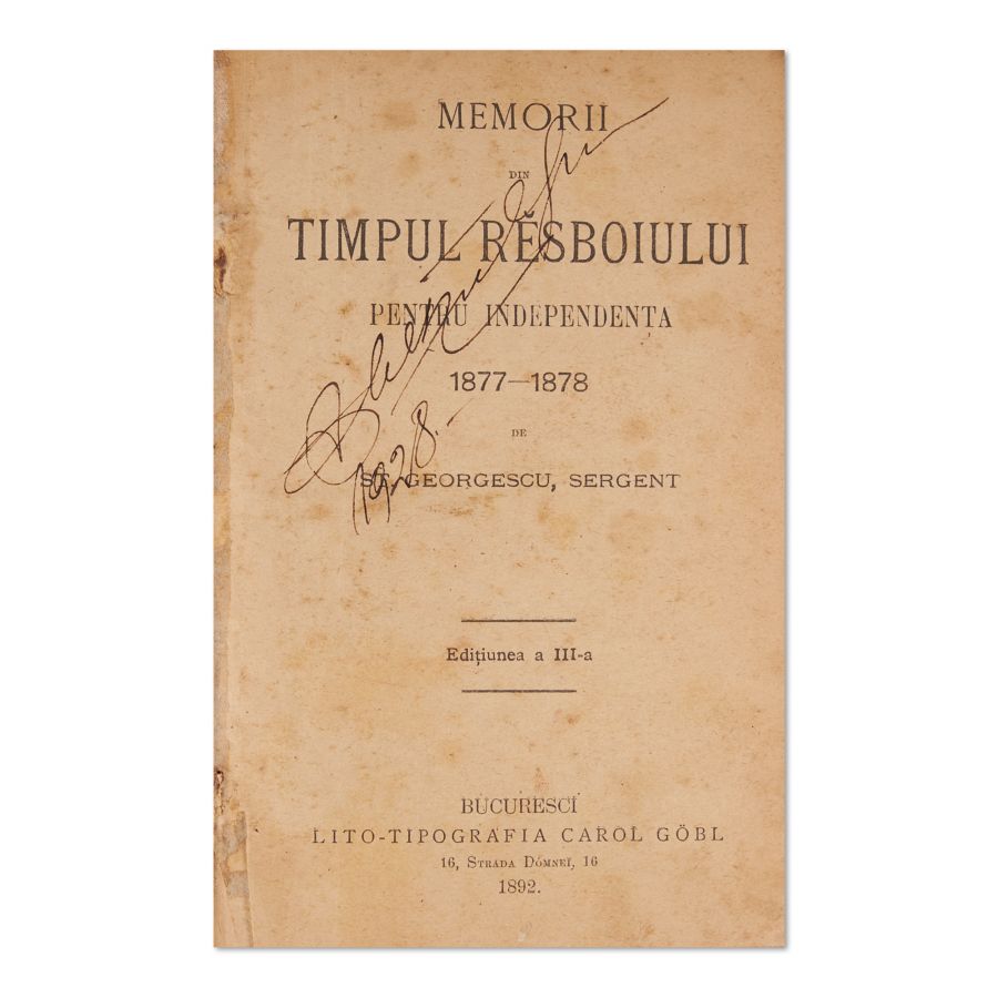 - St. Georgescu, Memorii din timpul războiului pentru independență, București, Lito-Tipografia Carol Gobl, 1892, 91 p.