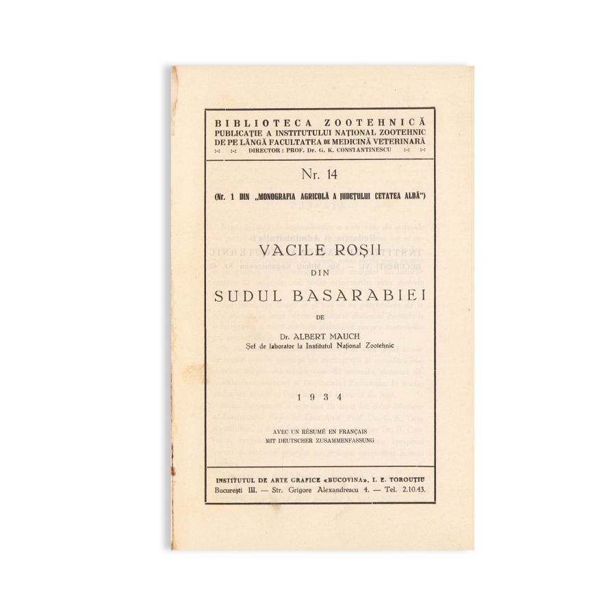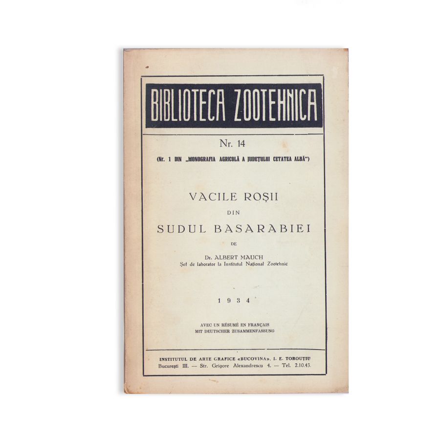 - Dr. Albert Mauch, Vacile roșii din sudul Basarabiei, 1934, București, Institutul de arte Grafice „Bucovina” I. E. Torouțiu, 1934, 167 p.