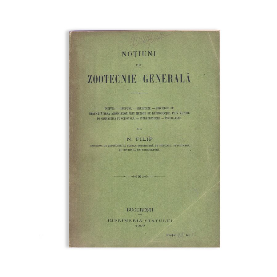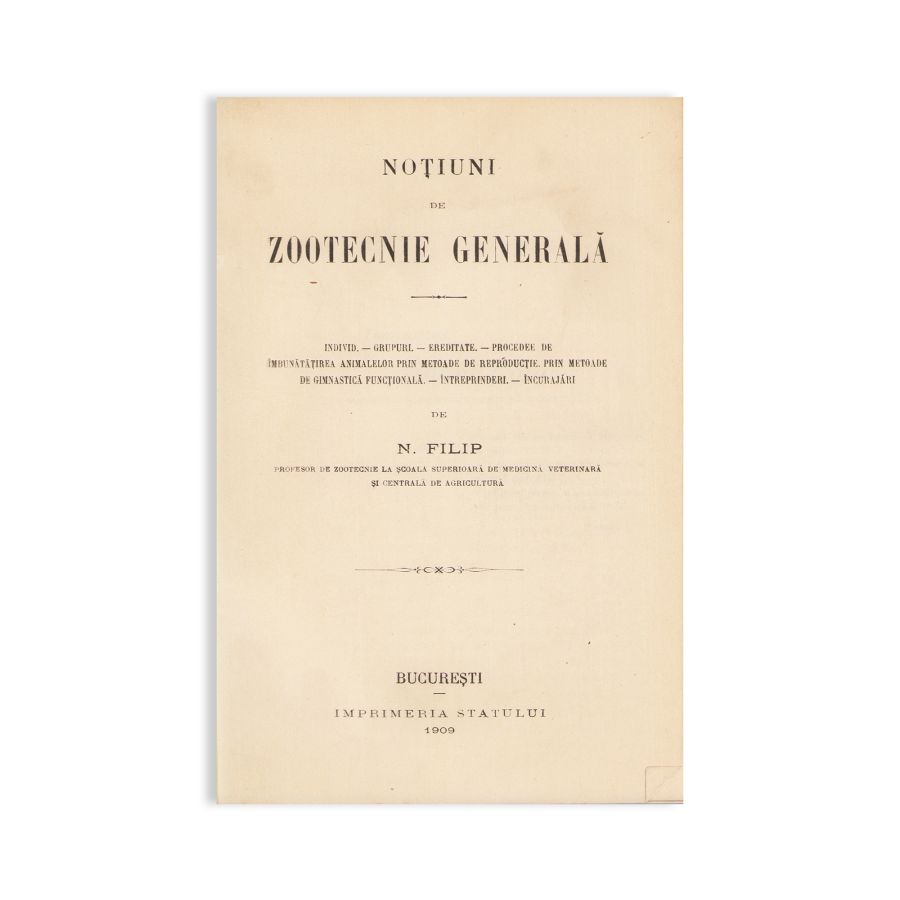 - N. Filip, Noțiuni de zootehnie generală, București, Imprimeria Statului, 1909, 494 p.